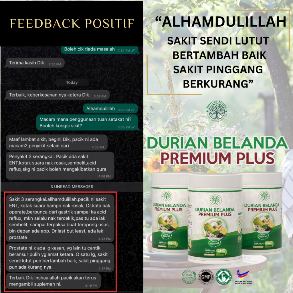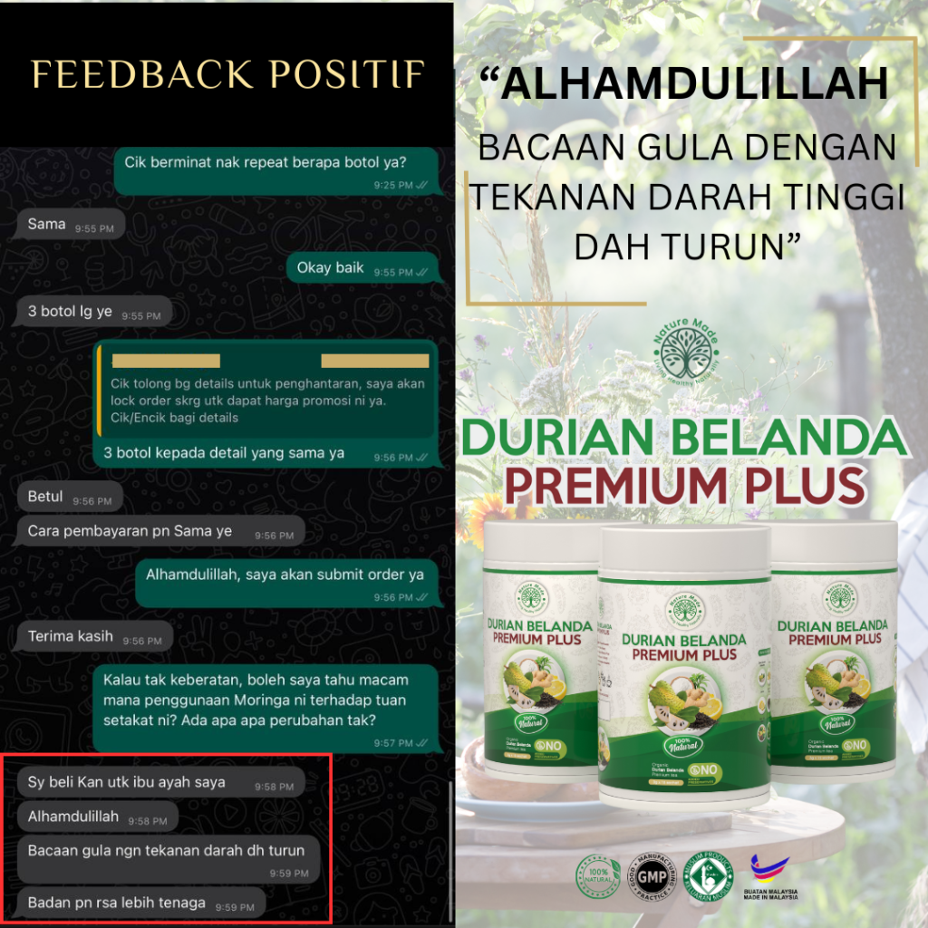 Durian Belanda Premium Plus ialah teh herba khas yang diformulasi dengan gabungan 100% bahan semula jadi untuk menyokong kesihatan sel, imuniti, dan tenaga harian. Badan lebih ringan, bertenaga, dan kesihatan yang lebih baik dengan setiap cawan.